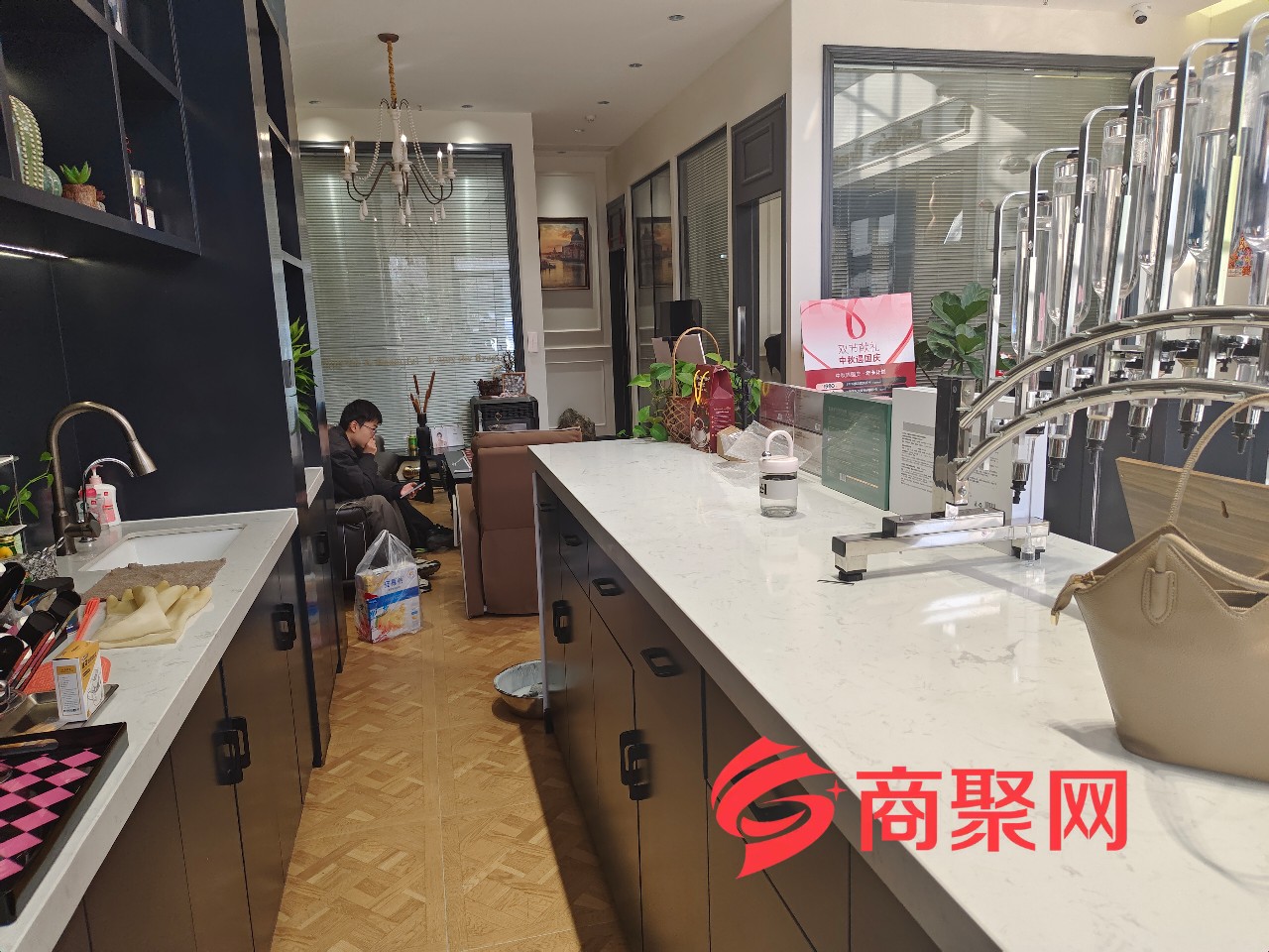 店铺优势:本店上下两层,有8个单间,中央空调,精装修,还有饮品台,有厨房。当时是毛坯装起来的,花了很多功夫。